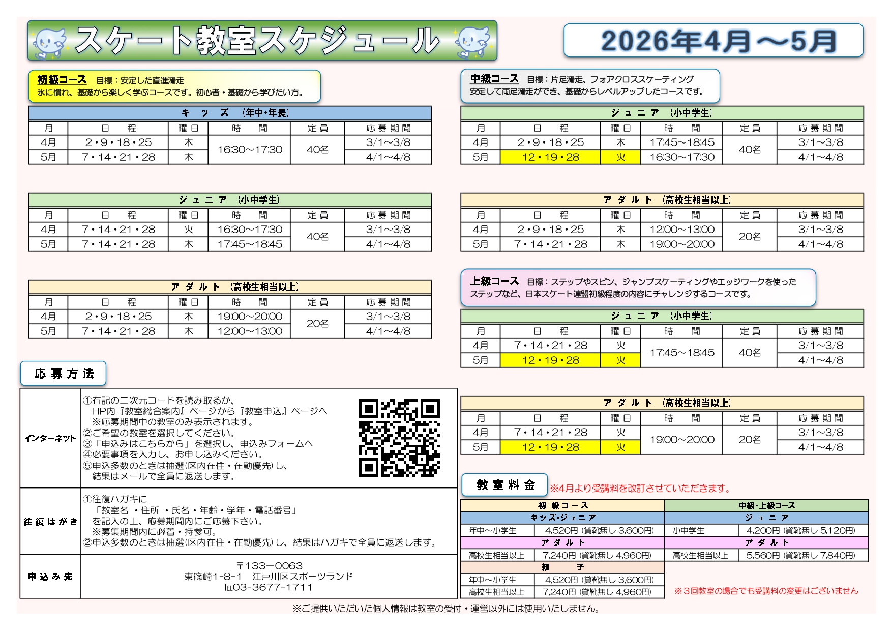 【告知】アイススケート教室4~5月分募集日程 3/1から募集開始